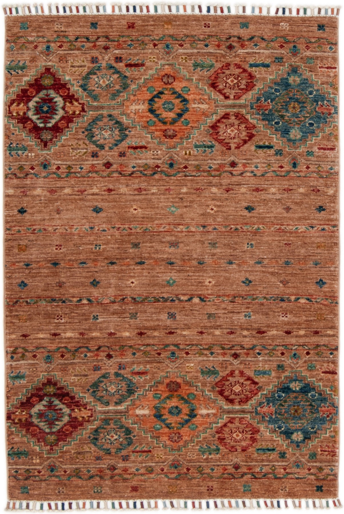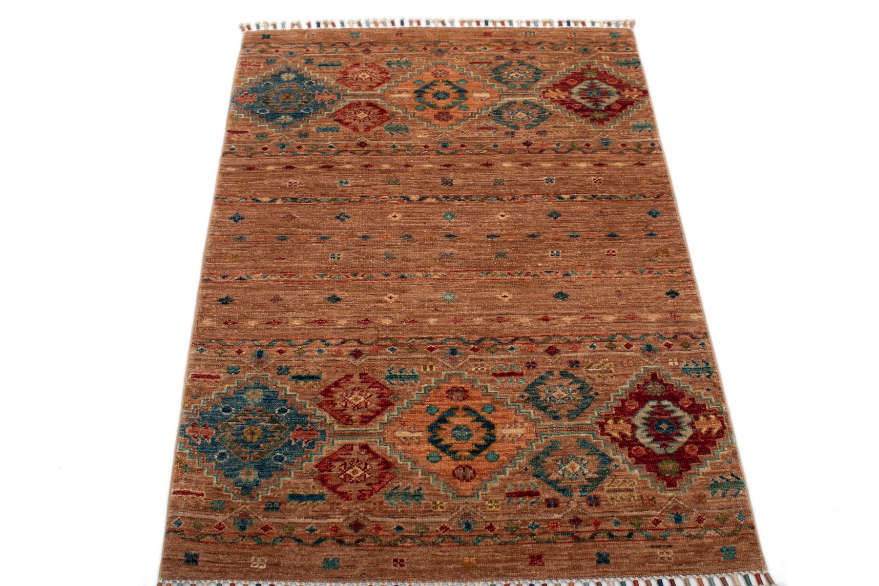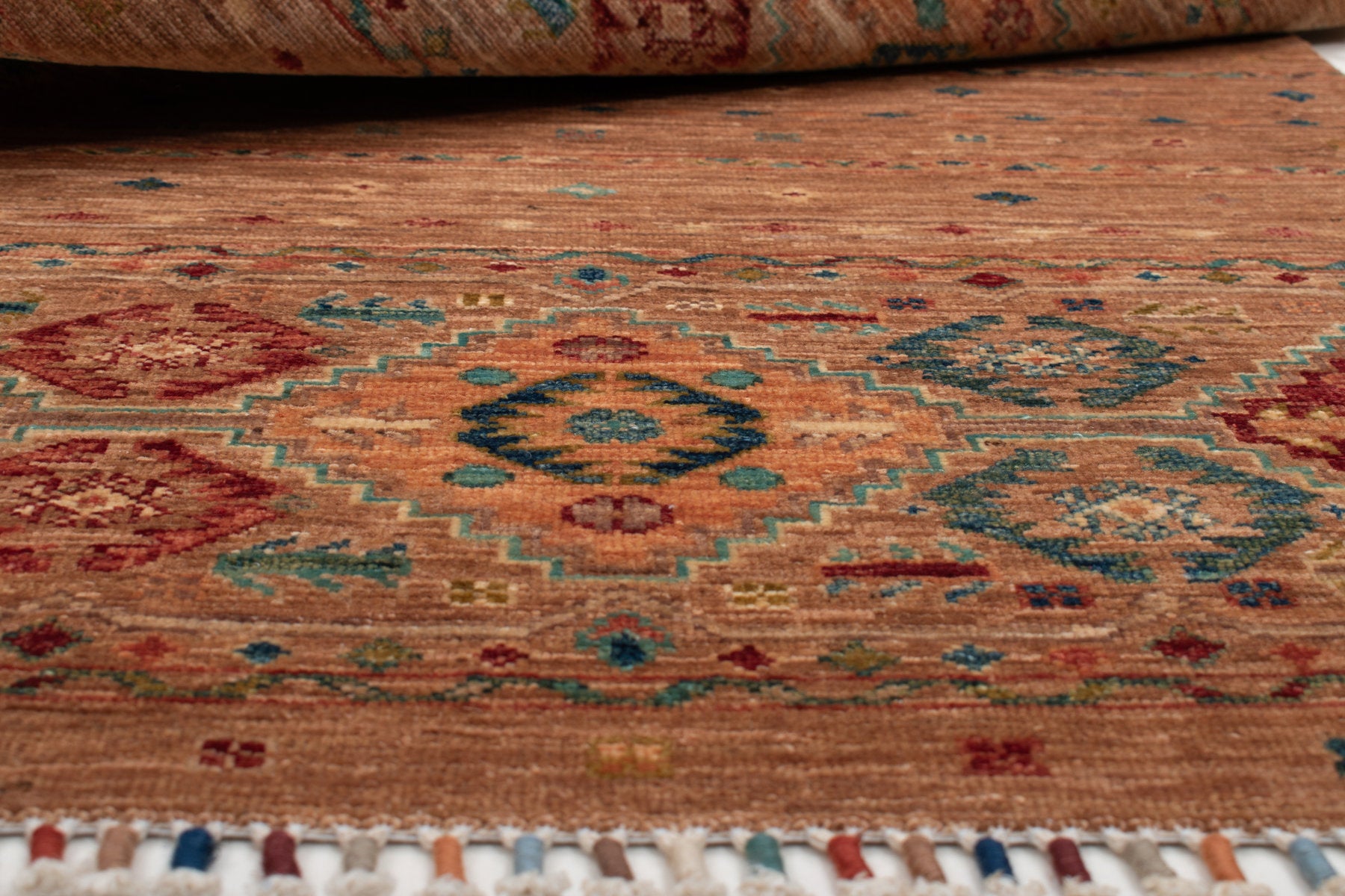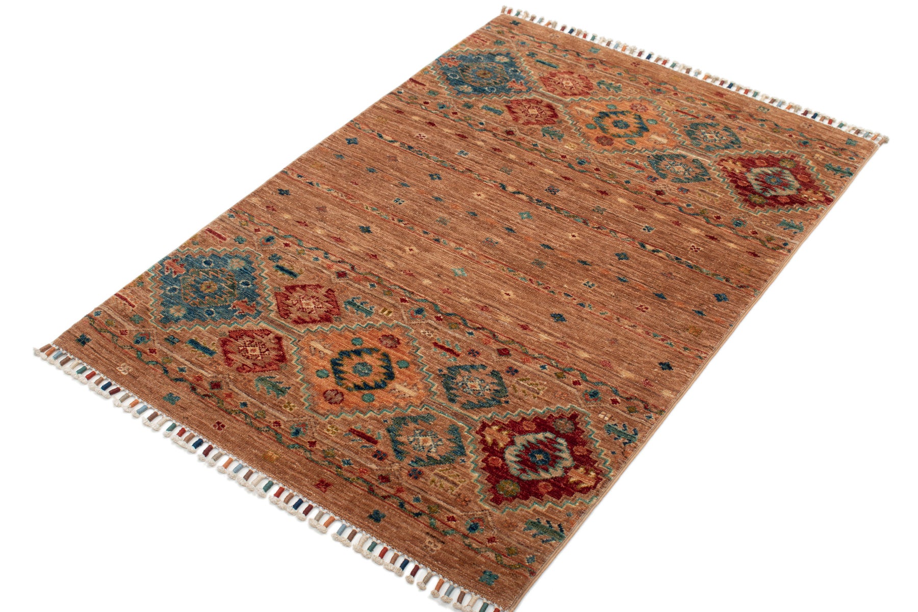 Ogni singolo tappeto è annodato o tessuto a mano al 100% ed è realizzato da nomadi e maestri tessitori secondo antichi schemi e tradizioni.