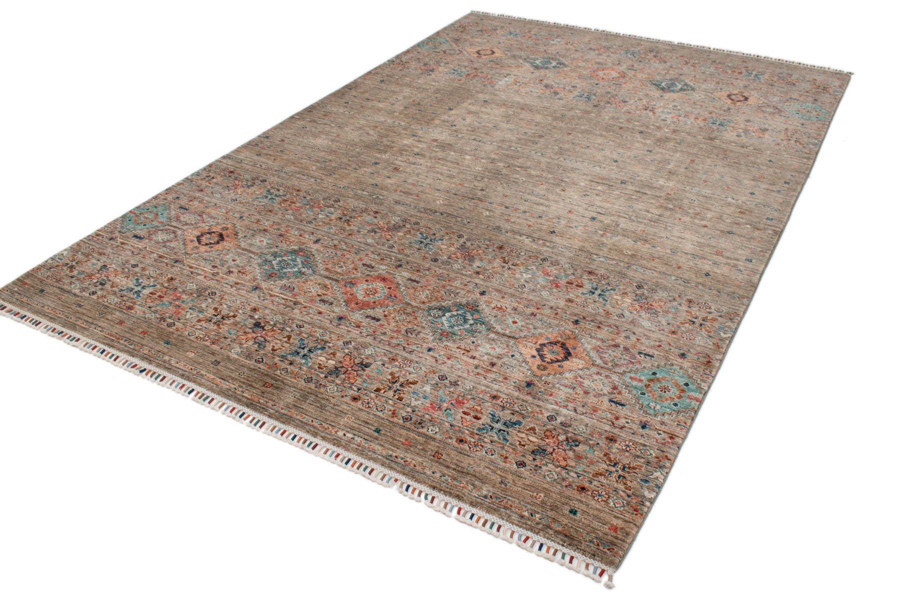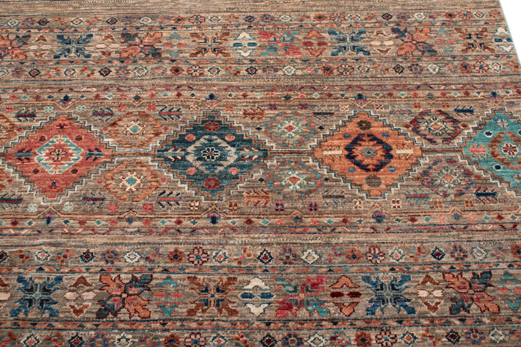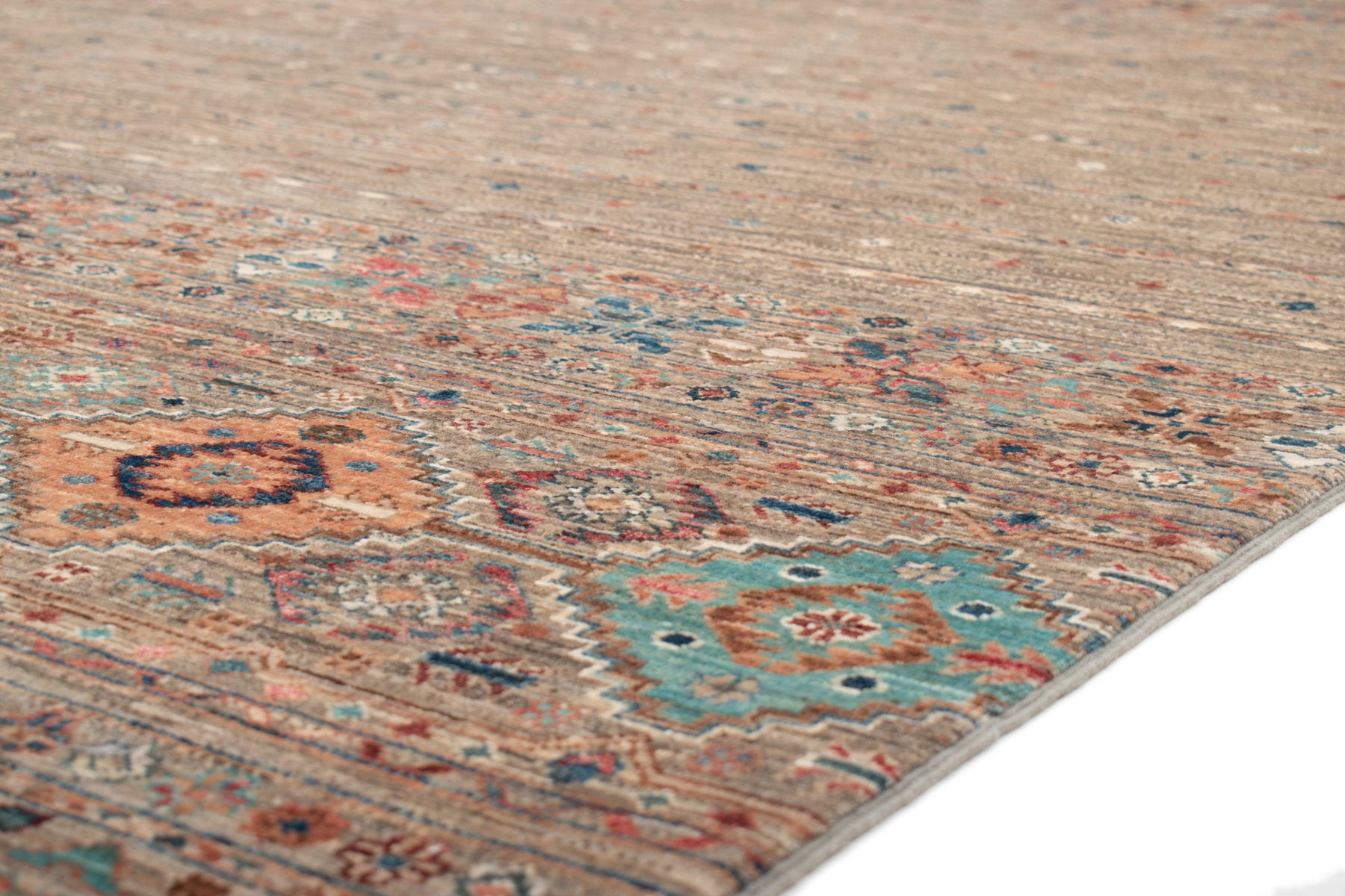 Heute stehen Samarkand-Teppiche für außergewöhnliche Qualität und moderne, orientalisch angehauchte Muster. Die Teppiche beziehen ihre Inspiration aus dem klassischen Perserteppich-Design. Die verwendete Wolle ist von hoher Qualität und die aus natürlichen Pflanzenfarben bestehende Farbpalette ist weicher und subtiler als die von Perserteppichen. Der kürzere Flor macht es einfach, den Teppich sauber zu halten.