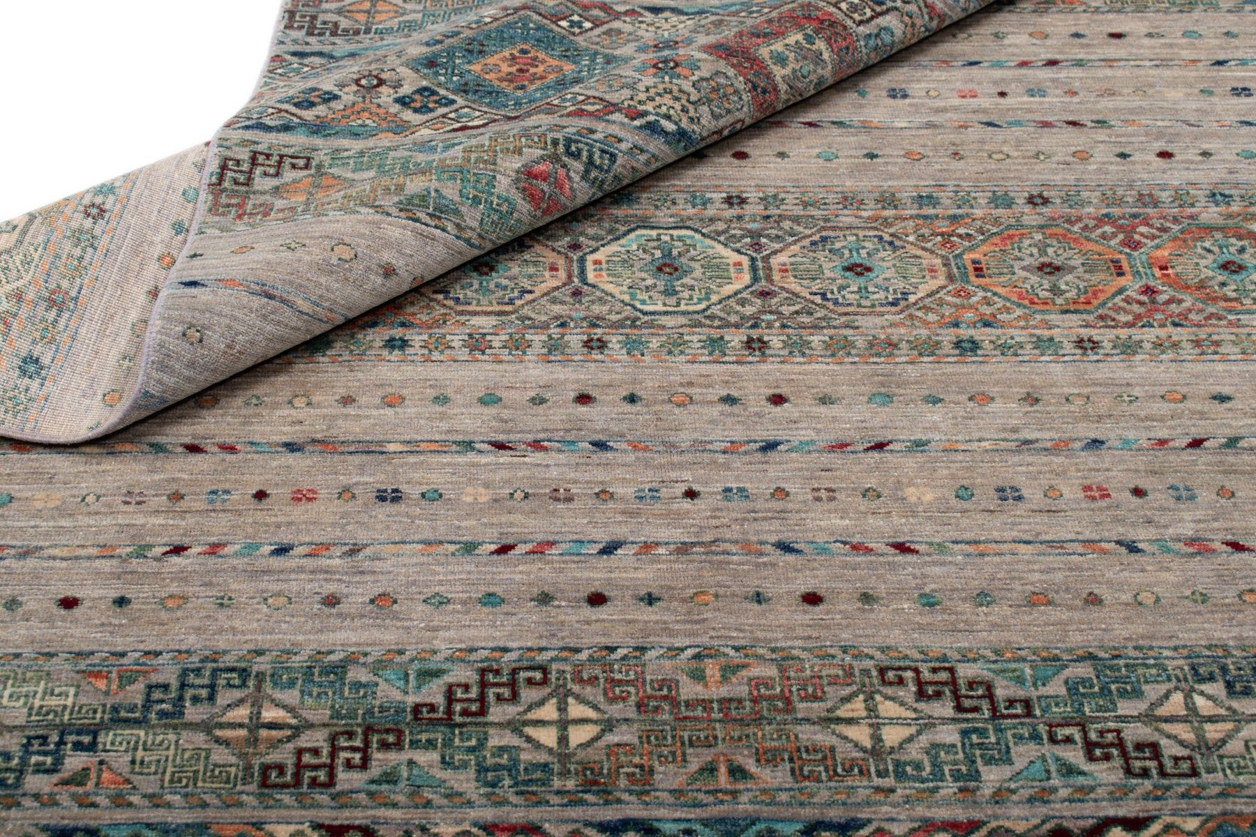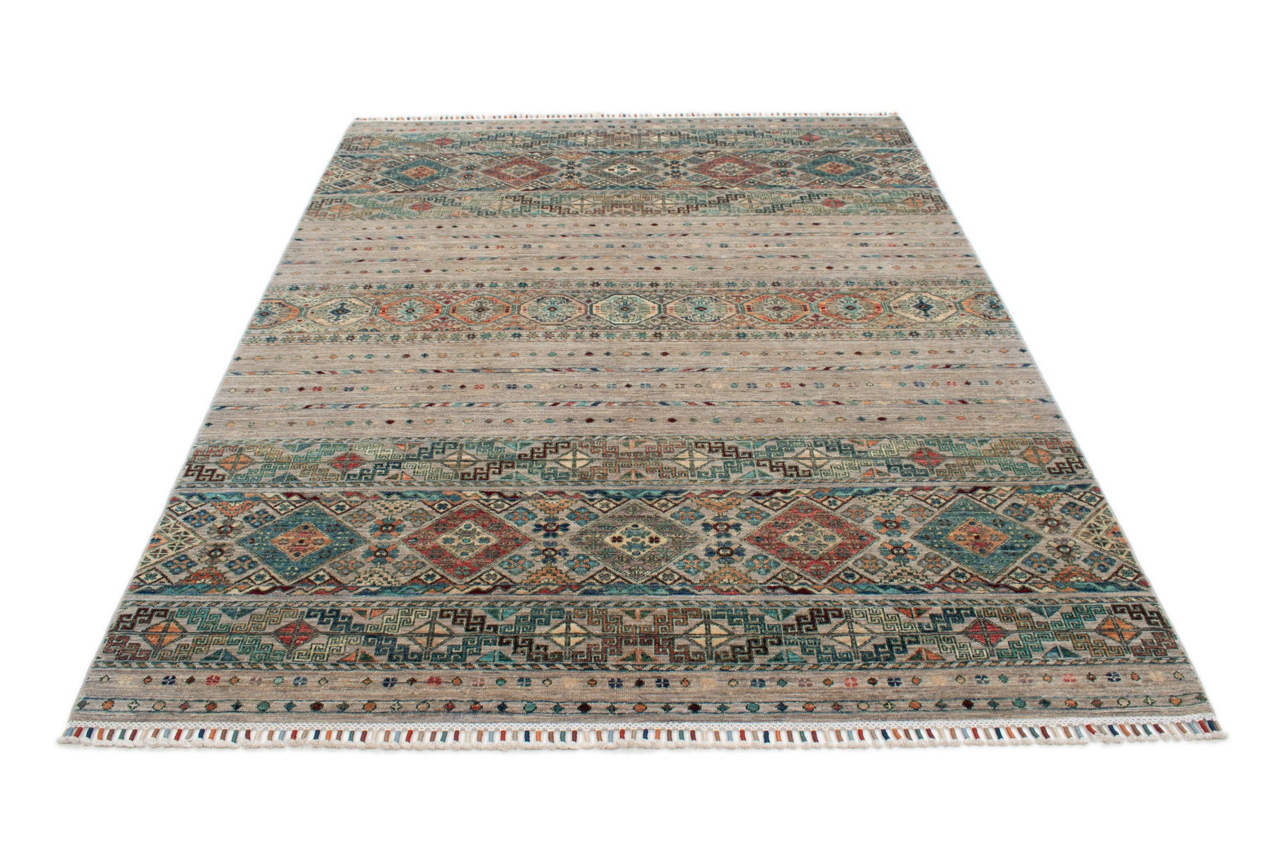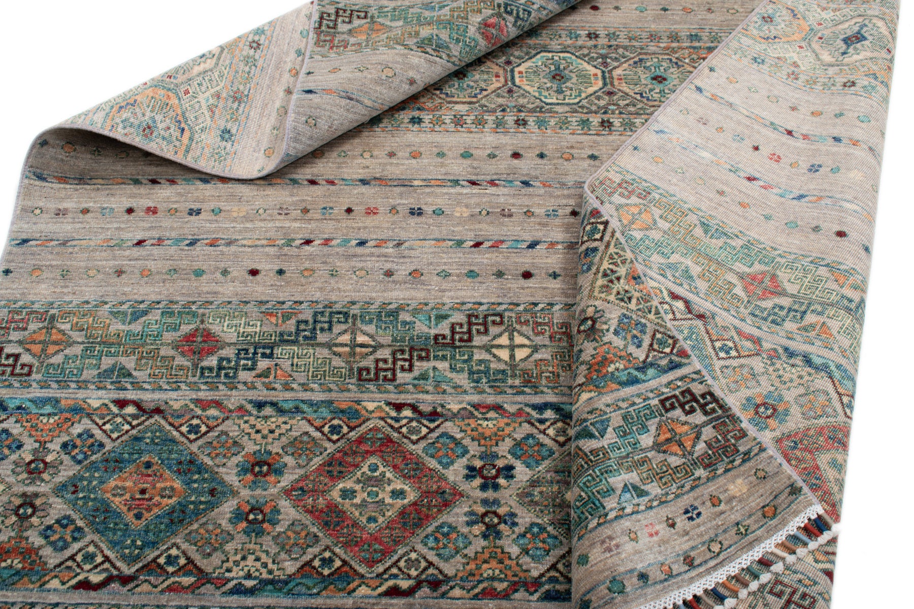 Ogni singolo tappeto è annodato o tessuto a mano al 100% ed è realizzato da nomadi e maestri tessitori secondo antichi schemi e tradizioni.