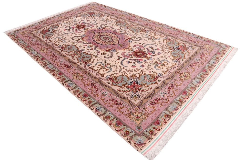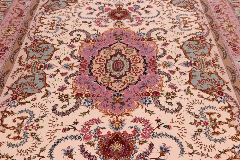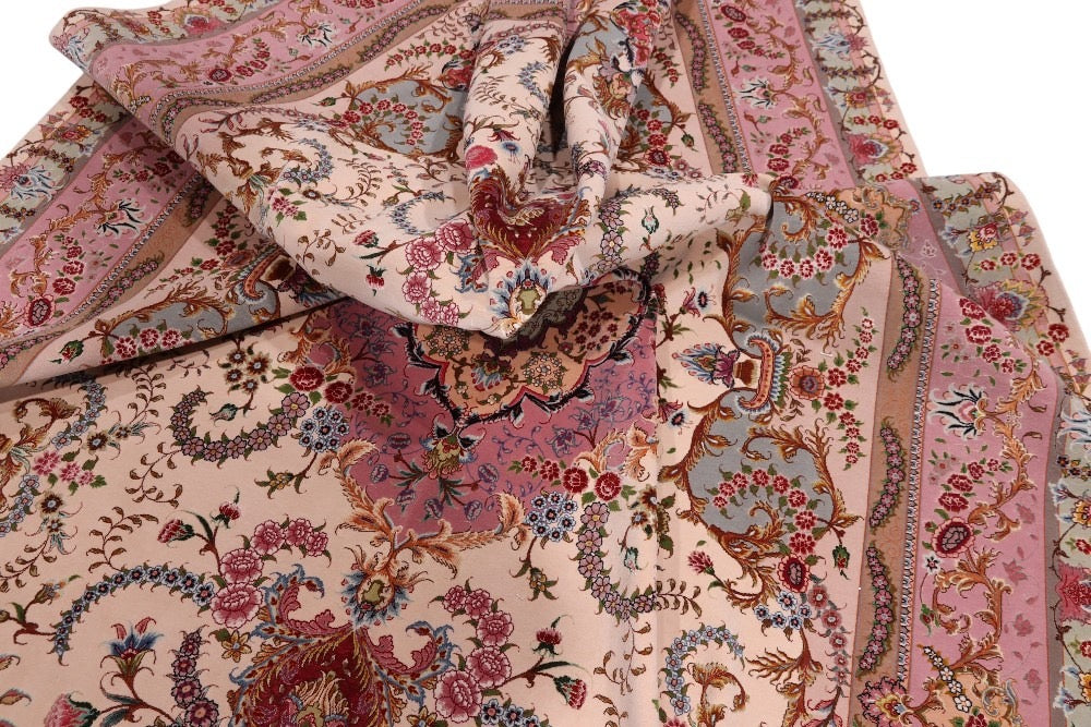 I tappeti Tabriz sono annodati a mano con lana molto sottile e di alta qualità, che consente una maggiore attenzione ai dettagli. La lana vergine ha un contenuto di grasso naturale che protegge il tappeto dall'usura quotidiana e lo rende estremamente resistente. La quantità di dettagli in questi tappeti è impressionante, con dettagli a volte accentuati con la seta per aggiungere lucentezza, quasi dando vita al tappeto.