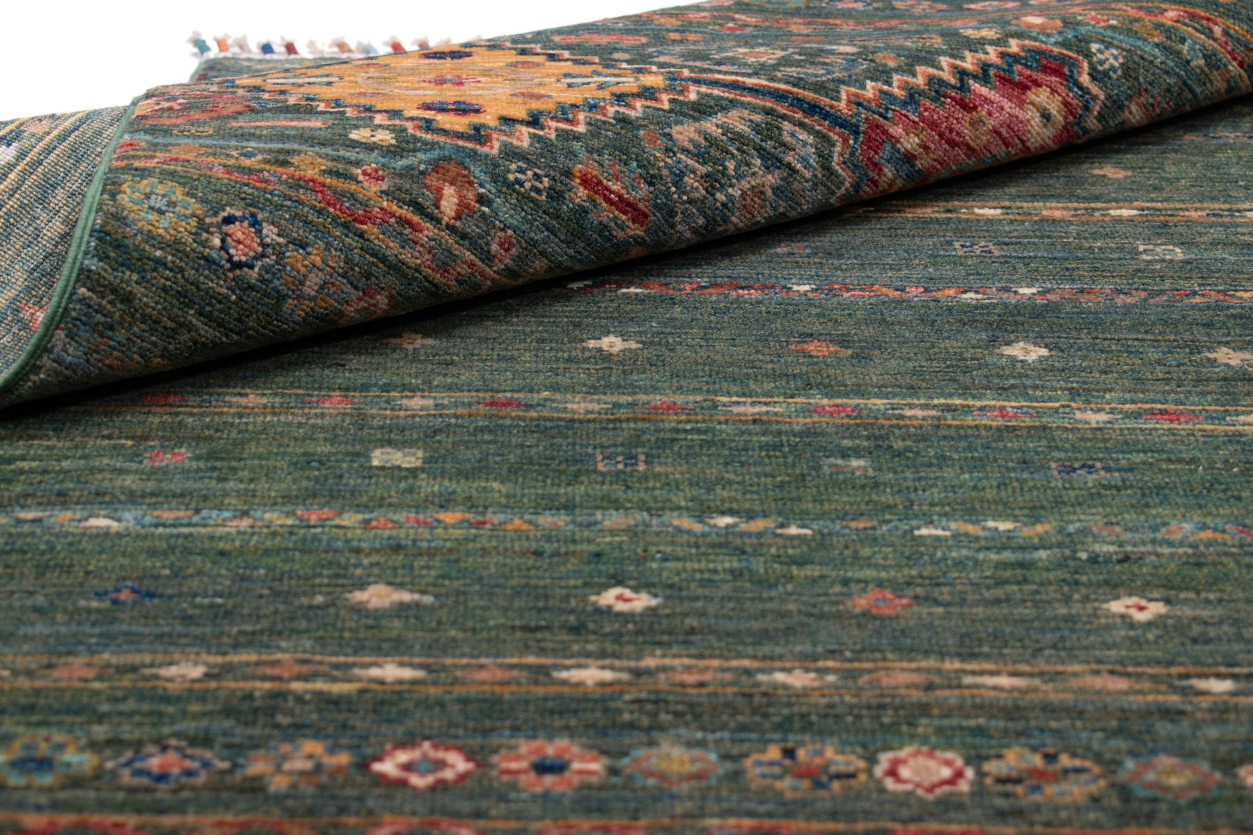 Heute stehen Samarkand-Teppiche für außergewöhnliche Qualität und moderne, orientalisch angehauchte Muster. Die Teppiche beziehen ihre Inspiration aus dem klassischen Perserteppich-Design. Die verwendete Wolle ist von hoher Qualität und die aus natürlichen Pflanzenfarben bestehende Farbpalette ist weicher und subtiler als die von Perserteppichen. Der kürzere Flor macht es einfach, den Teppich sauber zu halten.